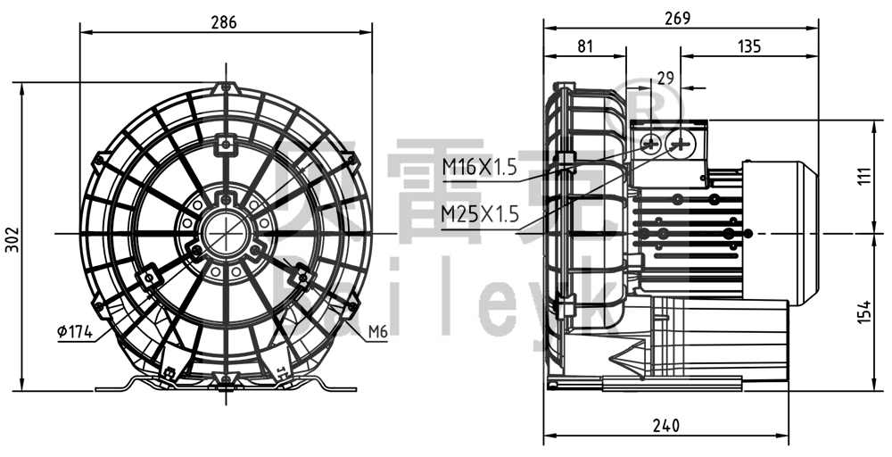 最大風(fēng)量:145m3/h 最大正壓:120mbar 最大負(fù)壓:120mbar 防護(hù)等級(jí):IP55 噪音:63db 重量:15Kg